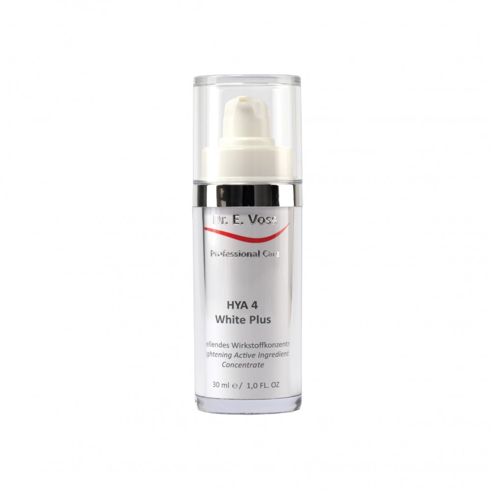 HYA 4 WHITE PLUS sadrži 7 aktivnih sastojaka, od kojih pet na različite načine prekida stvaranje melanina u pet različitih faza procesa — od čitanja DNK zapisa do konačnog pojavljivanja melanina na gornjem sloju epidermisa, što rezultira pigmentnim mrljama. Četiri od tih pet sastojaka također doprinose posvjetljenju i ujednačenom tenu kože. HYA 4 WHITE PLUS također pruža zaštitu od slobodnih radikala i UVA zraka. Zahvaljujući višestrukom pristupu, ovaj proizvod je jedinstven na svjetskoj razini. Gel za posvjetljenje kože HYA 4 WHITE PLUS prikladan je za sve tipove kože.