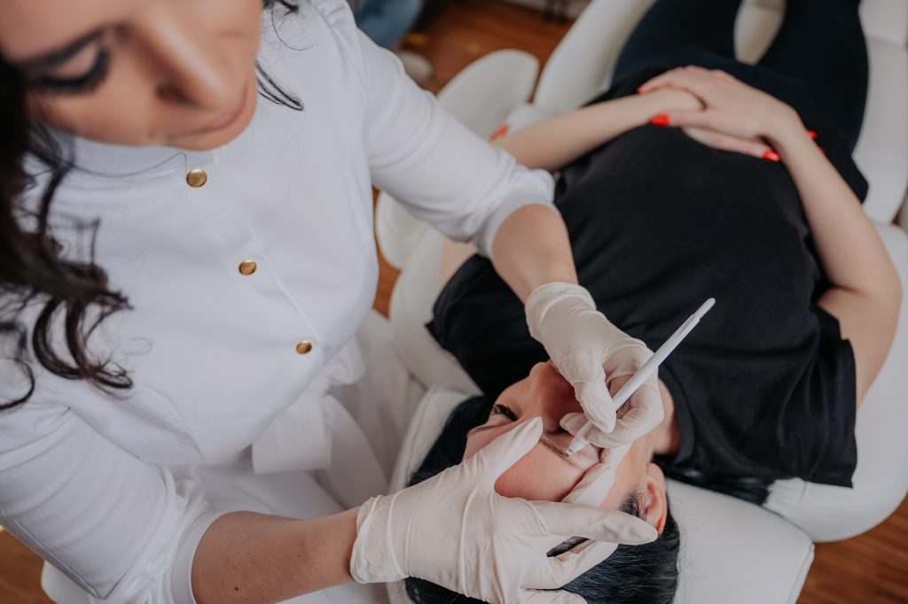 Postupak započinje čupanjem dlačica izvan savršene linije i preciznim iscrtavanjem konačnog oblika obrva. Taj se dio obično izvodi najdulje, jer je iznimno važno kvalitetno odrediti liniju u skladu s tvojim crtama lica.