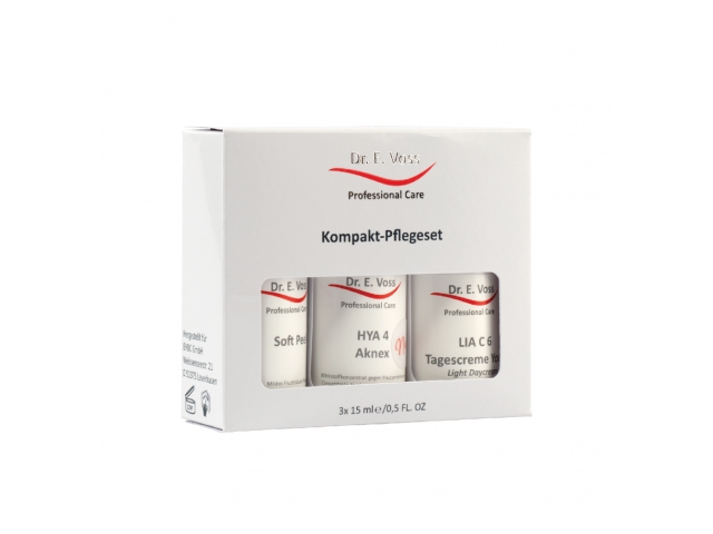 SOFT PEEL: učinkovit, a hkrati nežen piling na osnovi sadne kisline, ki kožo naredi gladko in sijočo. Rastlinski izvleček hamamelisa in alantoin poskrbita za pomiritev kože. Primeren je zlasti za uporabo na nečisti koži, nagnjeni k vnetju. LIA C 6® DAY CREAM YOUNG: lahka dnevna krema, ki kožo temeljito zaščiti pred zunanjimi vplivi, jo skrbno neguje in poskrbi, da ohranja mladosten videz. Krema za mlado kožo vsebuje zaščito LIA (skoraj 100-odstotna UVA zaščita, 84-odstotna UVB zaščita ter HDBM – pametni lovilec prostih radikalov). HYA 4 AKNEX: večstranski gel za mastno kožo, nagnjeno k vnetju. 8 aktivnih sestavin hkrati deluje na vse vzroke in simptome mastne in k vnetjem nagnjene kože ter hkrati zmanjšuje občutek draženja. Oleanolna kislina izboljša hormonsko ravnovesje kože, NDGA uravnava epidermalno keratinizacijo, visok odmerek vitamina B3 (niacinamid), provitamin B5 (pantenol) in madecassoside madekasoside delujejo sebostatično in protivnetno, medtem ko proteolitični encim papain učinkovito odstranjuje odmrle celice poroženele plasti epidermisa. S tem se zmanjša zastajanje sebuma v foliklih, onemogoči se razmnoževanje bakterij P. acnes in prepreči vnetni proces. Tako se hkrati učinkovito spopademo s štirimi glavnimi vzroki za nastanek aken. Pakiranje: 3 x 15 ml